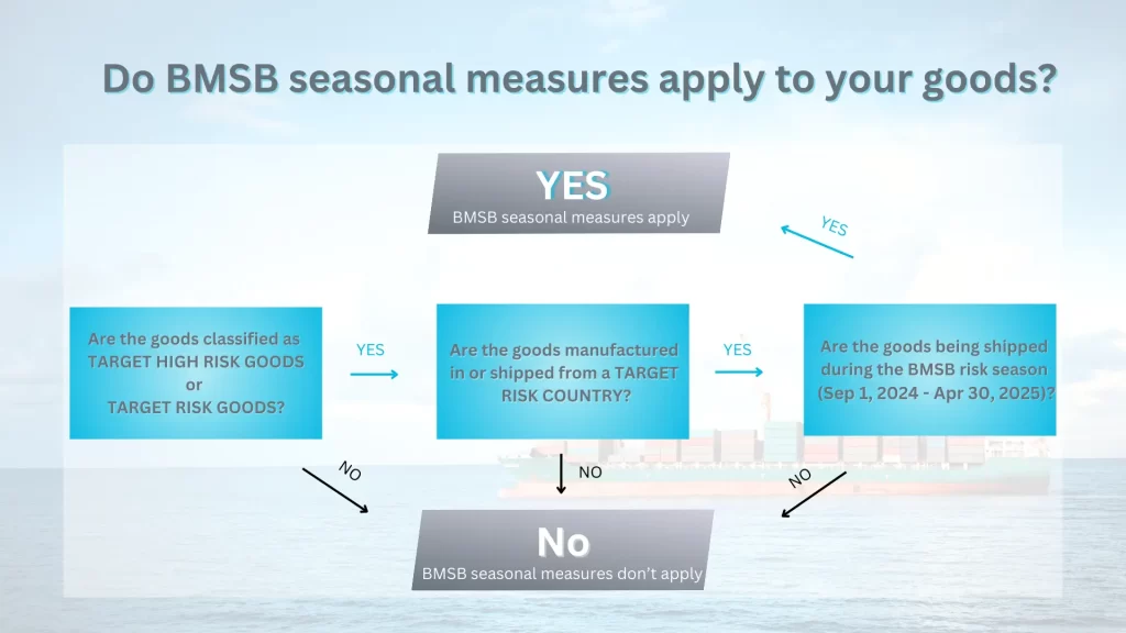 - Australia is enforcing stricter rules on goods arriving from certain countries during the BMSB risk season (September 1, 2024 to April 30, 2025).